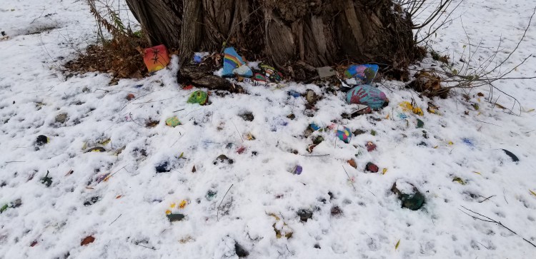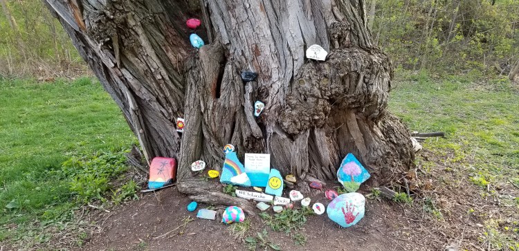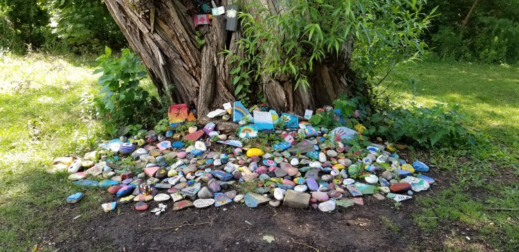The idea appeared to catch on. Some garbage around the tree was cleaned up, more painted rocks were added, people were paying attention. Some smart aleck deposited an empty beer can amongst the rocks. It was gone a few days later as the more thoughtful additions were piling up.