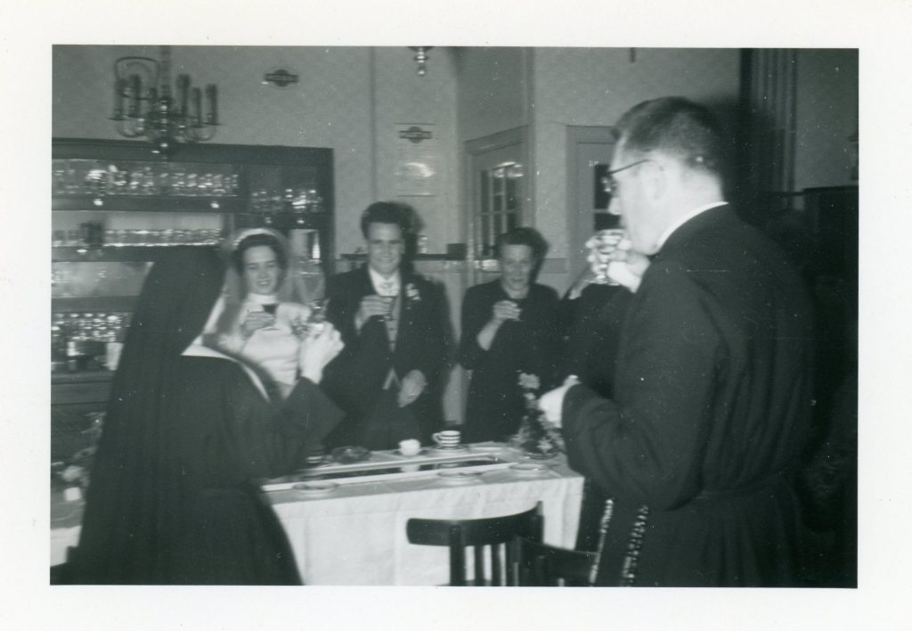 The civil wedding took place on April 10, 1958 at the city hall in Tilburg. My parents would mention this occasion, bringing attention to the date each year, but never pretending to celebrate, just acknowledging its existence. They treated the day like the mere formality it appeared to be, a necessary step to ensure the legality of the marriage. Not even the bride and groom removed their winter coat indicating the brevity of the whole process.