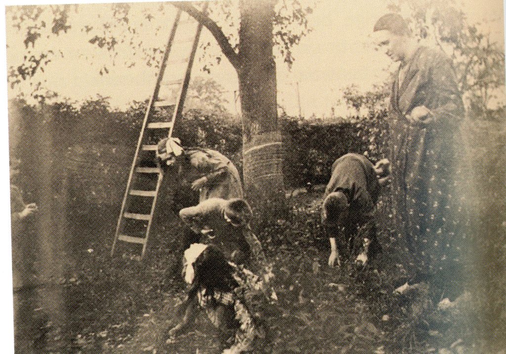In spite of the surrounding conditions, the cultivating of a garden was paramount for survival. “We had a very deep garden in Hoofdstraat, perhaps forty meters deep. At the front of the place some flowers were sown and, as in several Catholic gardens, at the beginning of the garden there was a Maria cave, a replica of the Lourdes cave…..In the early spring, starting in the nine beautiful days of February, when the sun was shining nicely, the garden was dug, the seedbeds prepared for carrots, [turnip greens], endive, kale, lettuce and whatever else could be sown.” Summer months involved canning and preserving the vegetables, and for harvesting the fruit from the pear tree. A successful garden meant you were self sufficient for longer periods of time. Food gaps were filled in by the farmers parading through the village streets with their crops. For Mom, therefore, the small production of food and the concomitant planting of flowers were part and parcel of a family homestead.