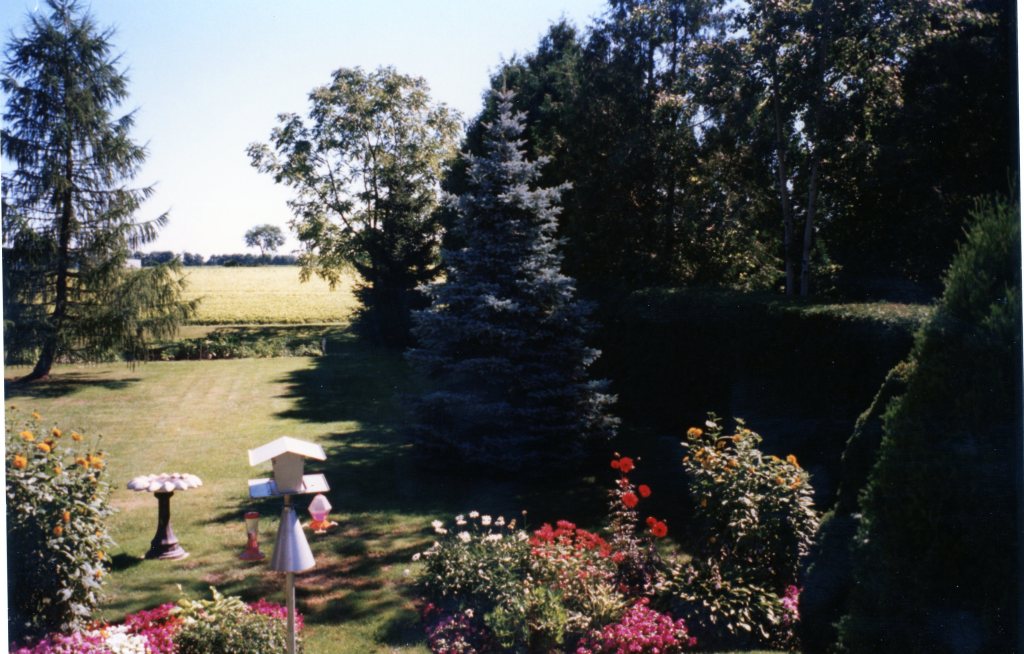 In later years, with everyone gone and the living at least an hour-and-a-half away, all with their own families and properties, the challenge to care for the yard increased. The vegetable garden also became too big for the needs of just two people so my parents started bundling “care” packages for someone to take back home. With age and diminishing interest, many of the flower gardens were turned to grass, something they could hire the neighbour’s young boy to mow. The glory of those early gardens are now admired only in the realm of a handful of pictures.