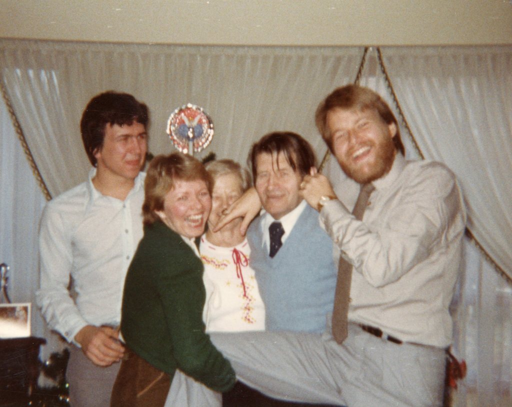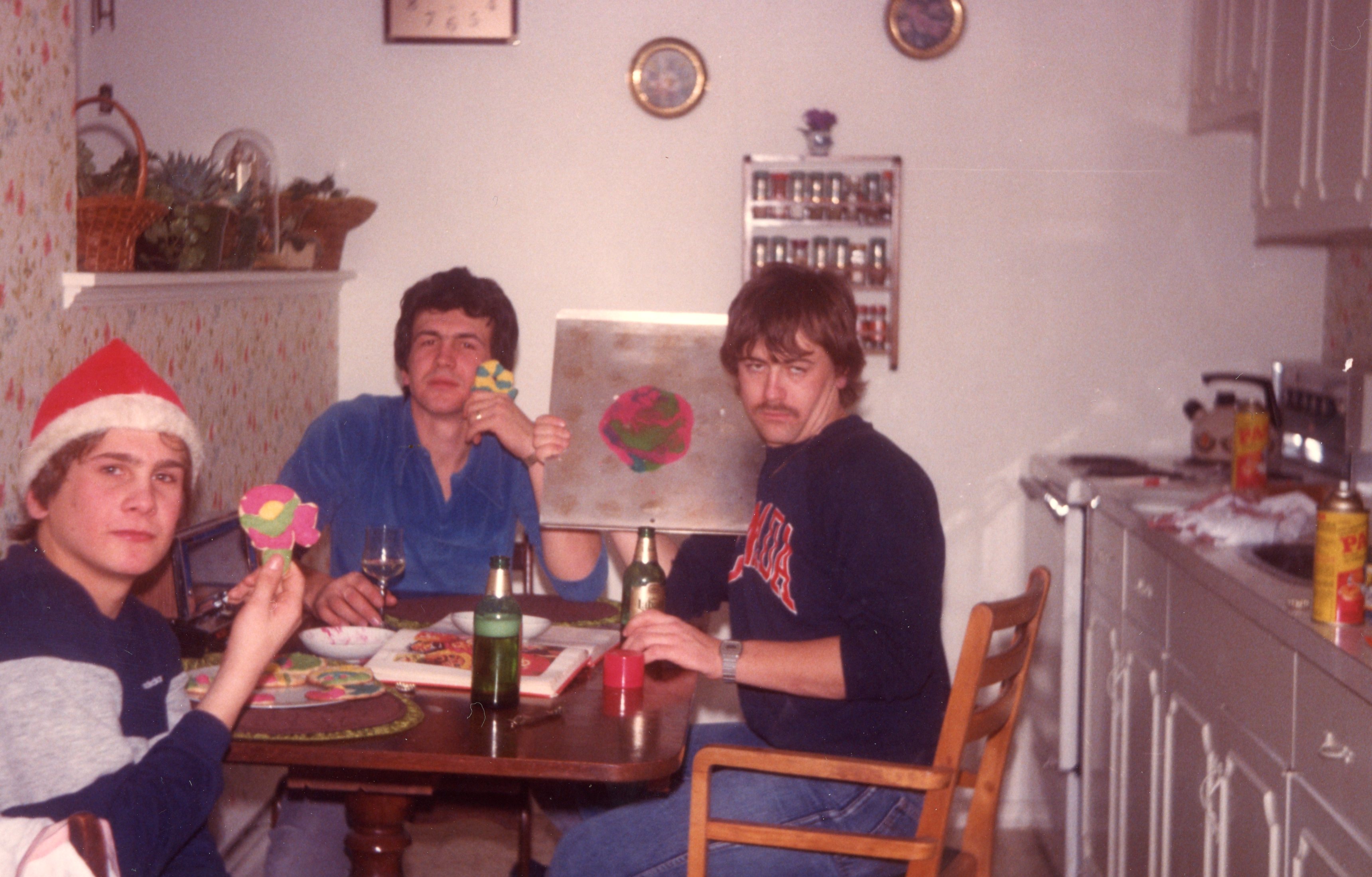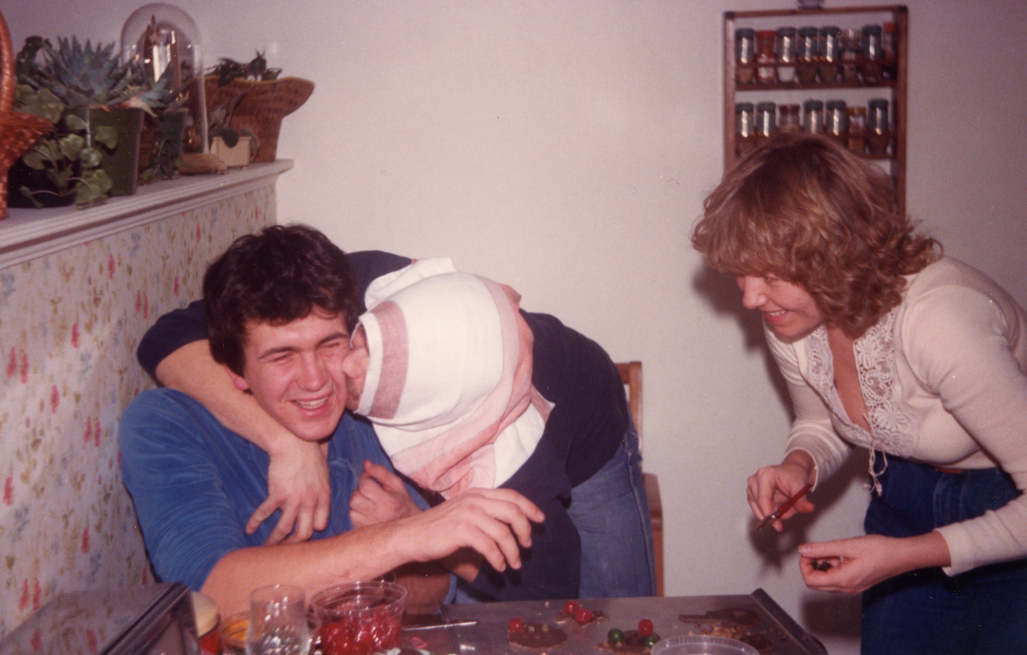 I remember our first “English” Christmas as a married couple, housed in our tiny apartment on Victoria Street in London, Ontario. The elfish tree was bought for five dollars from the A&P parking lot immediately behind our three story walk up, in direct view of our balcony. The only purchased decoration was the lighted circle of poinsettias serving as our topping; the small string of lights were a gift from my parents, and the decorations were hand made, teddy bears with cute red ribbon ties. Olga and I began our tradition of baking cookies by inviting my parents and brothers, Gary and Michael (Peter was not yet in London for the holidays) for a hilarious evening of dough and icing and beer.