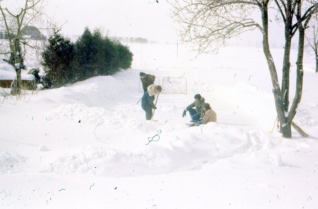 Our Dad began the day shift at 7:00 am which meant leaving the house at 6:30. If it snowed heavy overnight, Mom would get everyone out of their bed and out onto the driveway at 6:00 am to ensure the car could leave. Then we had to follow the vehicle up the unplowed dead end street, providing the extra push where needed and ensuring the car was able to ram through the tsunami wave of snow onto the highway. The plow eventually cleared the street leaving enough to cover the gravel road, all ready for us road hockey warriors.