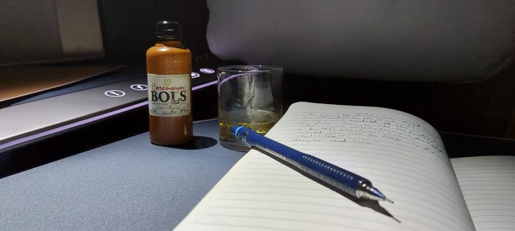 I noticed Bols Corenwyn – Aged Dutch Genever at the top of the spirits list on the menu as I settled into seat 2G, getting comfortable with the luxuries. In taking my dinner order, the attendants had already established I could not speak Dutch in spite of my name. When asked about a liqueur with my sweet dessert, I stumbled over the pronunciation and pointed to the words.