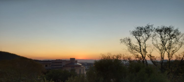 The days had been melding together and then Friday happened. At four o’clock I was officially “off the clock”. One colleague had family in Pretoria and we were invited for dinner consisting of oxtail, stump pot, roasted vegetables and salad. We left immediately to the home situated above the city to catch the sunset for the first time.