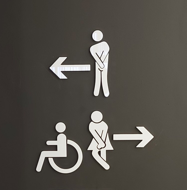 Some of the quirkiness was noticed at the hotel, my home for these five days. It operates as a small conference center with numerous public bathrooms. The set up is familiar, the bathroom signs were not.