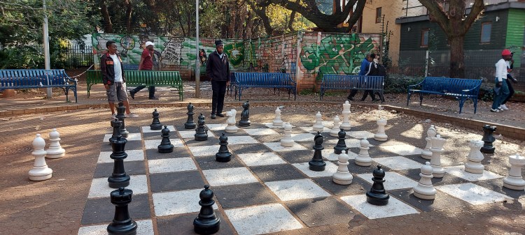 Finally, I found Joubert Park which immediately became my respite from the streets, an opportunity to settle and regroup in the sun. Worn from usage and neglect, the oldest park in Johannesburg appears to be a refuge for the locals, with people lounging on the grass, mothers and children strolling the grounds, pairs of men playing chess.
