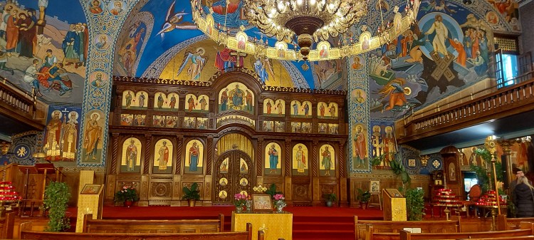 The set up here at St. Nicholas attracts my attention. I notice the constant movement, wondering  if anyone else glances over regularly. People pay heed if only to determine when best to join the line. It is longer this week as the days close in on Orthodox Easter. Confessants want to be absolved before partaking in communion, watching the mass from the side of the church, waiting their turn. The devout family gathered in the pews to our right are regular. The father and teenage daughter have already headed for the queue. There are more parishioners today.