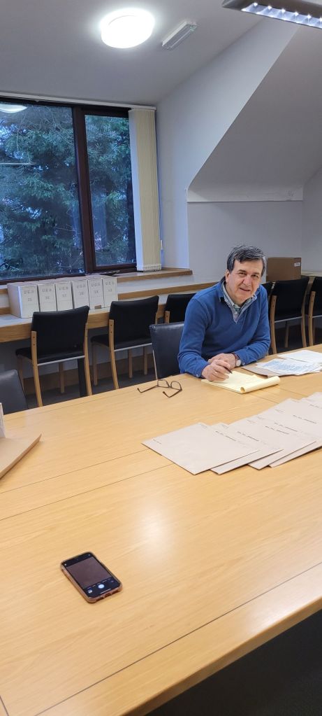 Stephen walks me to my room where I will stay for the next week, invites me into his mini apartment for a welcome cup of coffee and an acquainting conversation. He then tours me through the retirement home for Mill Hill missionaries and brothers, before I am introduced to the archives themselves, the dozen boxes Stephen has pulled aside and the reading room where I can examine the contents. Time to unpack the suitcase into my spartan room before supper at 6:00 pm, sharp.