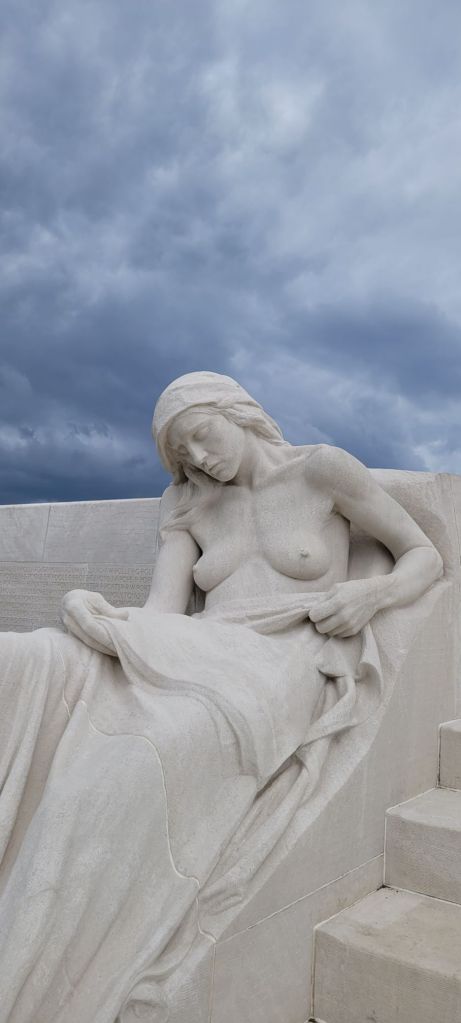 The pilgrimage to Vimy Ridge was next, site of Walter Allward’s stunning memorial to the 3,600 Canadian lives lost in a pivotal battle of WWI that helped define the country. Each step towards the massive monument induced another look upwards to the heavens, the destiny for the fallen, their names permanently inscribed at the base below.