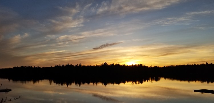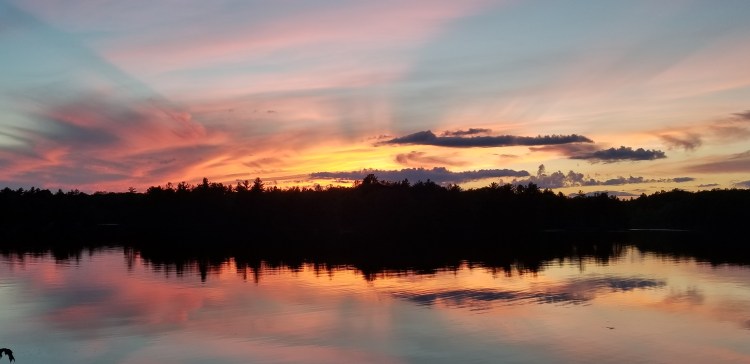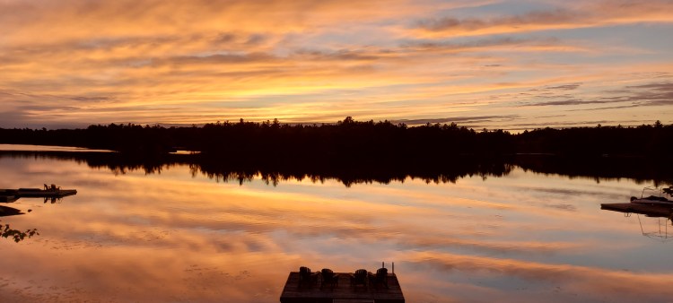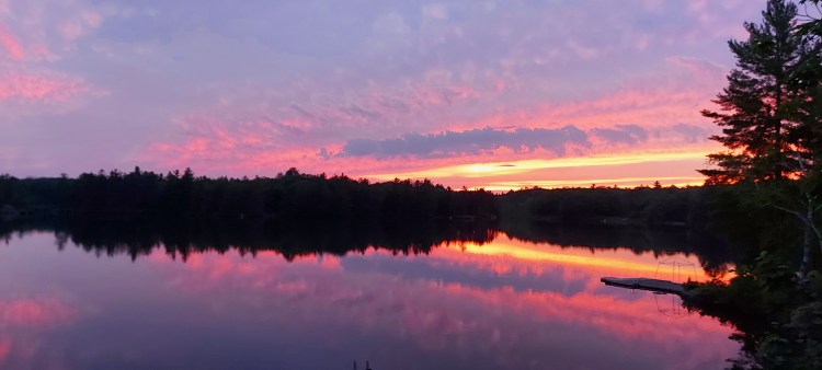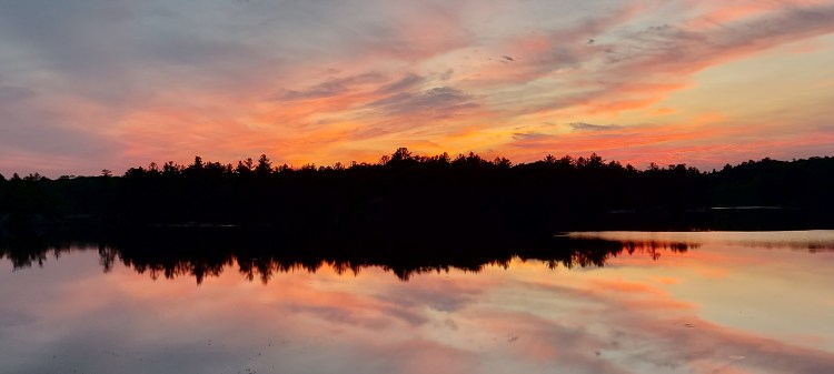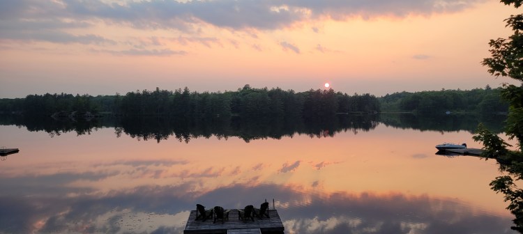 One of the many features of our cottage/lakehouse is it’s western view. We are drenched in sunshine all afternoon and watch it set over the treed horizon each night. With the alchemist combination of cloud and light rays, the sky paints a different backdrop every night.